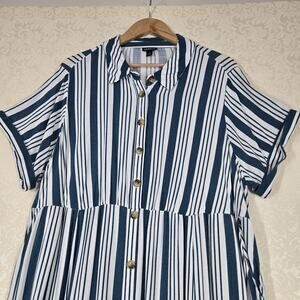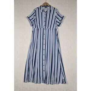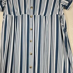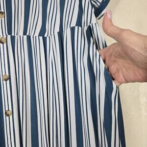 Torrid Rayon Slub Godet Maxi Dress sz 2 (22/24) Teal White Vertical Striped. Functional side seam pockets