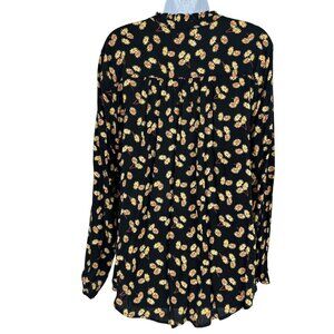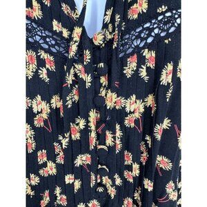 Torrid Rayon Slub Peasant Long Sleeve Top Black Yellow Daisy Flower Print Sz 1X