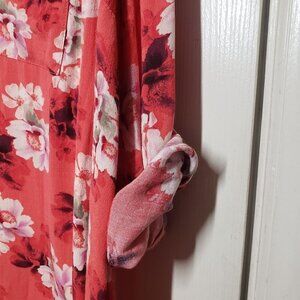 Torrid Rayon Slub Pullover Harper Floral Pink Roll Tab Sleeve Blouse Womens 1X