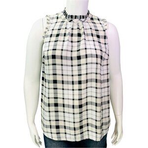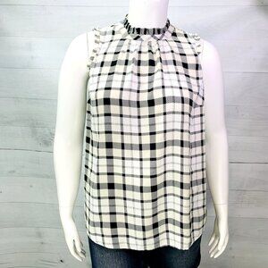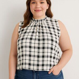 Torrid Rayon Twill Ruffle Trim Mock Neck Tank Black White Plaid Plus Size 1 |1X