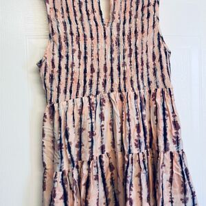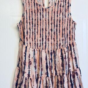 Torrid Rayon Twill Smocked Tiered Tank Plus Sz 1 1X 14/16 Ink Blot Stripe Print