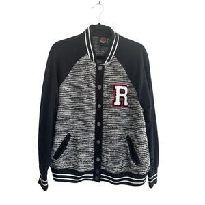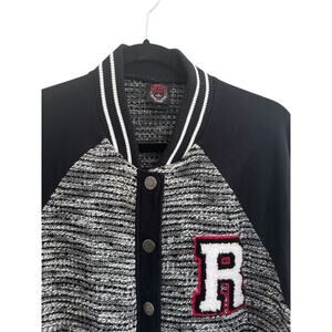 Torrid Rebel Wilson Varsity Jacket Sz 1 Black Snap Front Knit Embroidered #4889