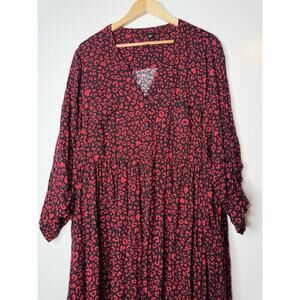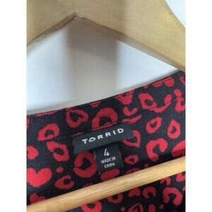 Torrid Red Black Leopard Heart Challis Button Front Shirt Dress 4 Or 4X Plus