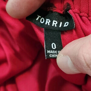Torrid red and black rose chiffon dress in size 0 with off-shoulder neckline and soft ruffle layer. Perfect for romantic goth looks or dark feminine style. Excellent pre-owned condition.