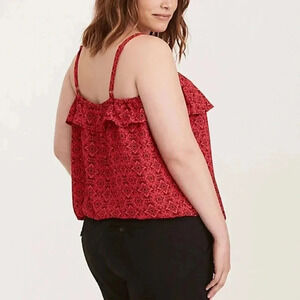 Torrid Red Black Ruffle Sleeveless Top