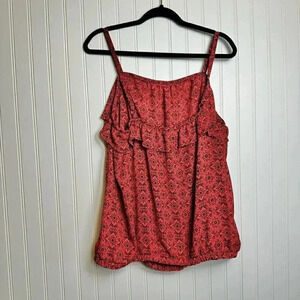 Torrid Red Black Ruffle Sleeveless Top Elastic at bottom 2X D48