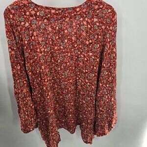 Torrid Red Floral Open Viscose Open Ruana Kimono Boho Cardigan Size 1x/2x