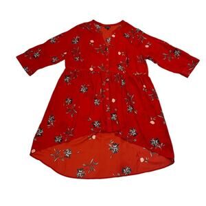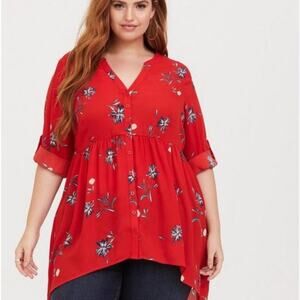 Torrid Red Floral Sheer Lightweight Flowy Feminine Hi Low Top Tunic Size 1X