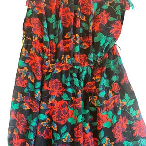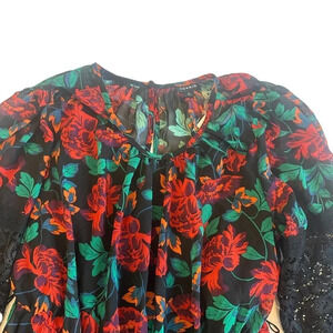 Torrid Red Green Floral Maxi Dress Chiffon Lace Sleeves Size 0 12 Women's NWT