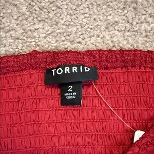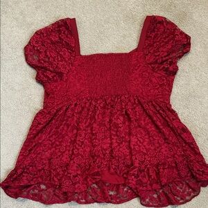 NWT Chic red lace blouse with floral pattern. Short puff sleeves. Perfect for a stylish look. Great for any dressy or casual outings.