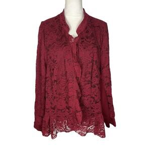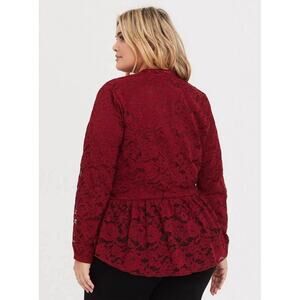 Make a bold statement with this stunning Torrid red lace military-style blazer. Designed with a flattering peplum silhouette, this jacket combines feminine lace with structured details for a dramatic and elegant look.