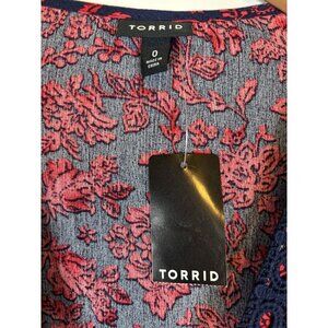 Elevate your style with this stunning Torrid blouse in a vibrant mix of red and navy blue. The floral pattern and tasseled accents add a touch of bohemian flair, while the lightweight fabric and long sleeves make it perfect for any season.