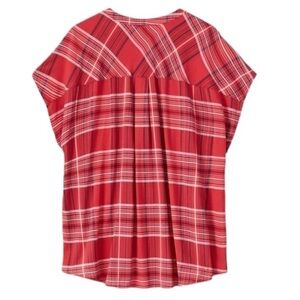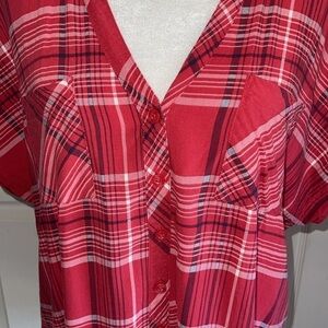 Torrid red plaid challis button front dolman sleeve top. Front chest pockets. Size 0 = US 12. 24” armpit to armpit laid flat. 27 1/4” shoulder seam to hem. Very good pre owned condition