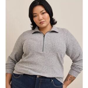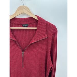 Torrid Red Relaxed Fit Super Soft Plush Rib Quarter Zip Sweatshirt Women Size 2X