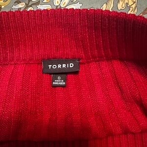 Chic red ribbed skirt set. Perfect for versatile styling. Top is a Torrid size 1 and the Skirt is a Torrid size 0 . Worn once for an office event super cute just didn’t like it on me. The skirt is a bit of an A Line fit .. cute with patterned tights and boots.