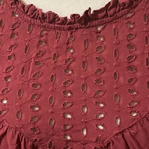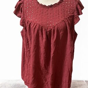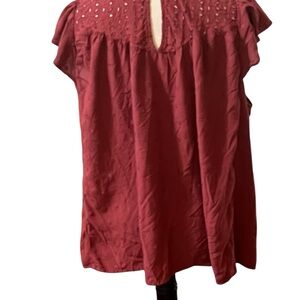 This striking red blouse from Torrid showcases elegant ruffled accents and short sleeves, offering a chic and comfortable style for any occasion.