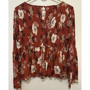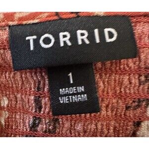 Torrid Red Terracotta Floral Crinkled Gauze Babydoll Top Size 1 1x 14 16 #44156
