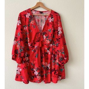 Torrid Red Floral Baby Doll Blouse/ NWT size 3