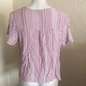 Torrid Red Wine White Ivory Stripe Button Midi Shirt Top Blouse