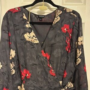 Torrid Red and Pink Wrap Sundress with Bishop Sleeves