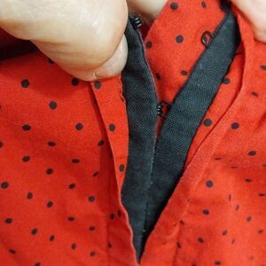 This striking red blouse from Torrid showcases an asymmetrical design with chic cut-out features. Its unique style and vibrant color make it a perfect choice for adding a touch of modern elegance to your wardrobe. There are belt loops available for you to belt or not.