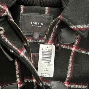 Torrid Red/Black Buffalo Plaid Hooded Toggle Coat Jacket w/ Hood Size 1X 14/16