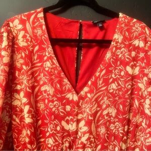 Torrid Red/Orange & tan with metallic thread long sleeve midi dress pockets