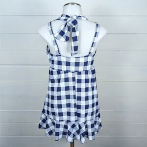 Torrid Retro Wireless Swim Dress 1X Halter Neck Preppy Pinup Navy Blue Gingham