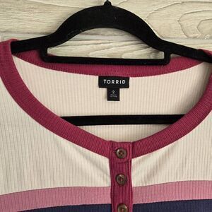 Torrid Ribbed Colorblock Henley Elbow Length Sleeve Womens SZ 2 18/20