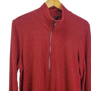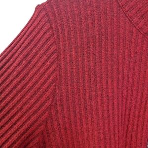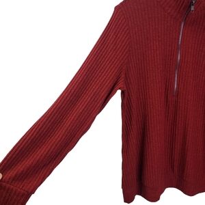 Features: red color, ribbed texture, high neck, half zip