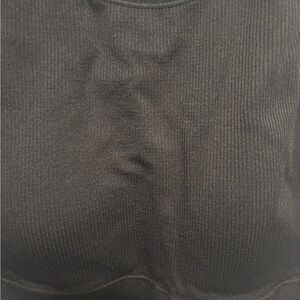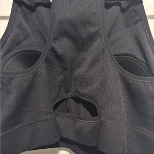 Sleek, comfortable, and supportive bralette in classic black. Features a high-neck front for coverage and a racerback design with a subtle cutout detail for added breathability and style. Made from a soft, stretchy, ribbed fabric that moves with you while providing light to medium support.