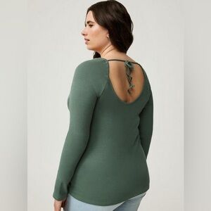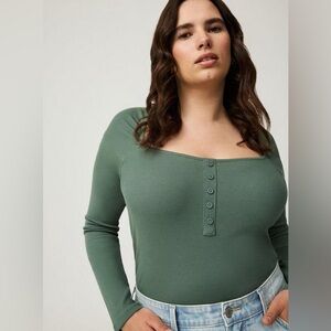 Torrid Ribbed Square Neck Henley Dark Forest Size 3 NWT