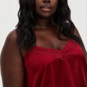 Torrid Rich Red Satin Lace Trim Sleep Set NWOT 3x