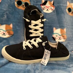 NEW WITH TAGS! Size 8 Extra Wide. These Torrid sneakers feature a sleek black and white color scheme, perfect for versatile everyday wear. With a classic lace-up design and a comfortable flat sole, they offer both style and practicality. The low-top silhouette and contrasting laces add a touch of timeless elegance to any casual outfit.