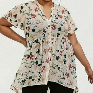 Torrid Romantic Fairycore NWT lexie pink floral chiffon high low tunic size 00