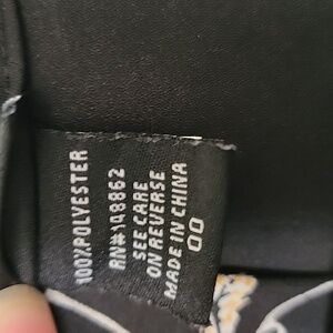 Black with yellow and white florals top. Keyhole cut out at the chest. Elbow length sleeves that are secured with tab. Sharkbite hem. Lightweight fabric, doesn't stretch. Great condition. moody, garden, botanical, brunch girly, dinner, date night, fall, autumn summer, spring, cottage, office, workplace, career, witchy, going out, curvy, plus, flowy colorful