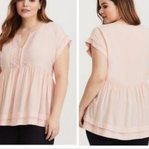 Torrid Romantic Spring Pastel Blush Pink Colored Babydoll Boho Top 2X