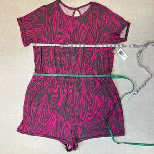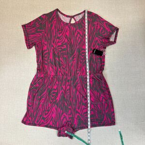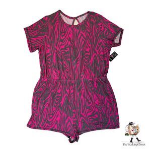 Torrid Romper Plus 2X Zebra Pink Elastic Waist Keyhole Surplice Shorts Pockets