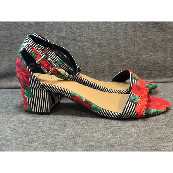Torrid Rose Floral Striped Ankle Strap Block Heel - Women's Size 9