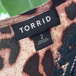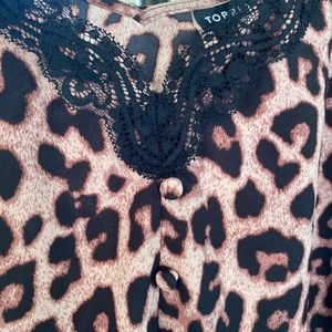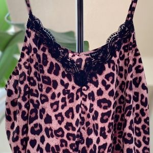 This Sophie Satin Lace Trim Swing Cami from Torrid has a fun rose-colored leopard print trimmed with black lace. It features buttons and adjustable shoulder straps.