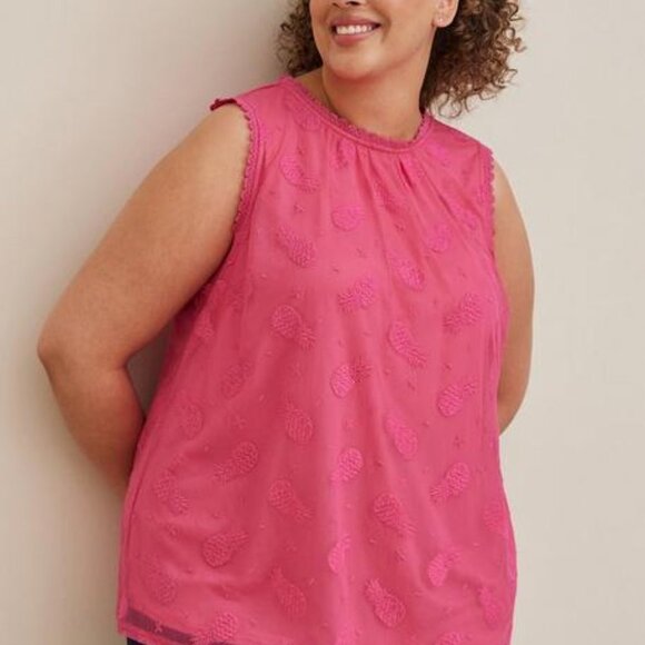Torrid Ruffle Mock Neck Pineapple PinkTank Sz 1 (1X)