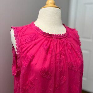 This is such a cute tank in pink pineapple perfection. Pineapple mesh overlay with crochet neckline with cute gathering.