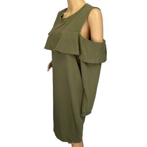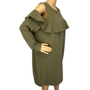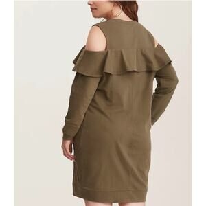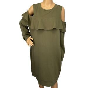 Torrid Ruffle Sweatshirt Dress Olive Green Cold Shoulder Long Sleeve Plus Sz 1X