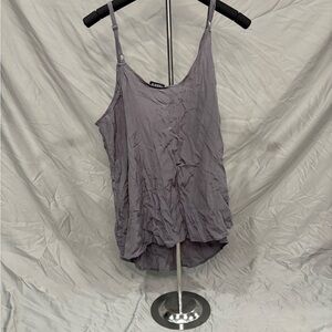 Stylish gray ruffle tank top. Perfect for casual wear.