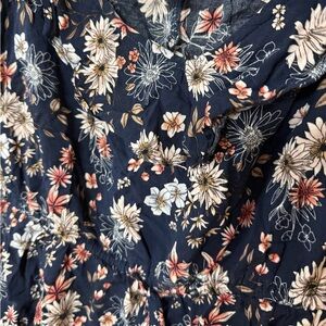 Chic navy camisole with floral print. Perfect for casual outings. It has adjustable straps and a tie around the waist.