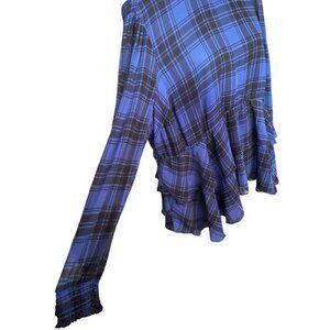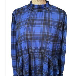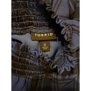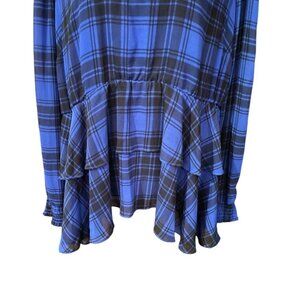 Torrid Ruffle Tiered Top in a size 0. Really good condition. Blue and black color. High neck. Plaid print. Laying flat pit to pit 23in. Length is 26.5in.