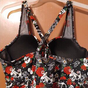Torrid SIZE 4 (26) Bathing Suit SWIMSUIT Romper Tattoo Skull Dice Roses PREOWNED