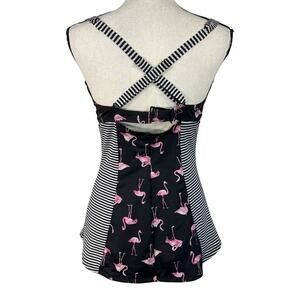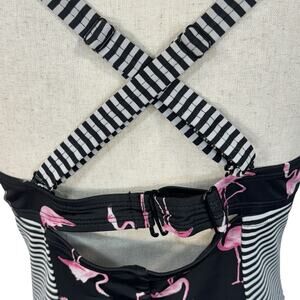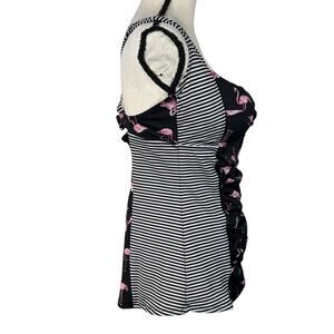 Torrid SZ 0 (Large) Tankini Swim Top Flamingos Striped Push-Up Padded Ruched