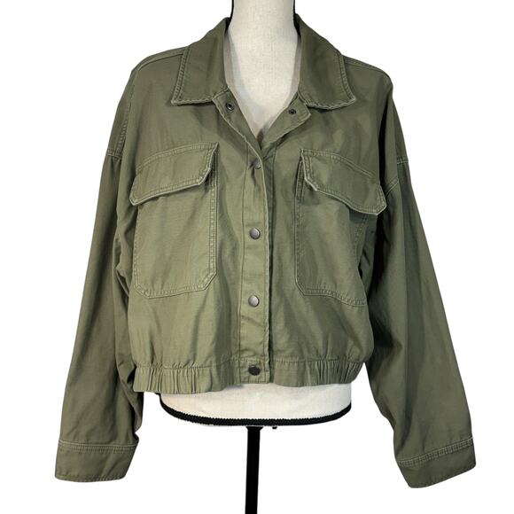 Torrid SZ 3 (3X-Large) Cropped Utility Jacket Snap Front Pockets Olive Green