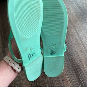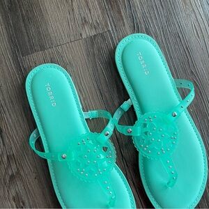 DETAILS: Torrid sandals women's 12WW Extra Wide, turqoise mint green medallion flip flop jelly style.